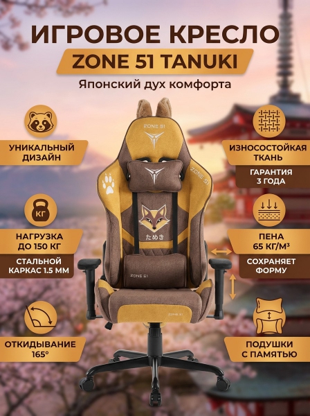 Игровое кресло ZONE 51 TANUKI Brown-Orange - Преимущества